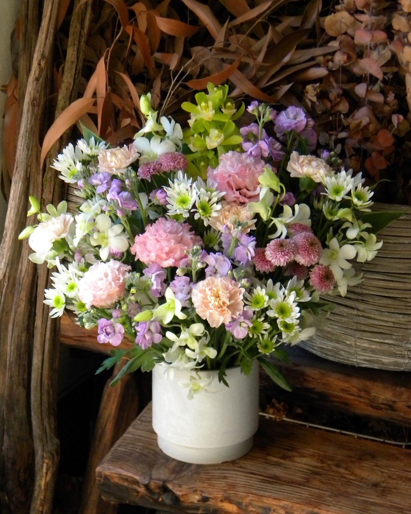 故人様を偲ぶ想いやご先祖様の供養に、上品で優しい色合いの花に想いを込めてお作り致します。できる限り長い間飾ってもらえるように、新鮮な花々を市場から仕入し丁寧に水揚げ管理致します。